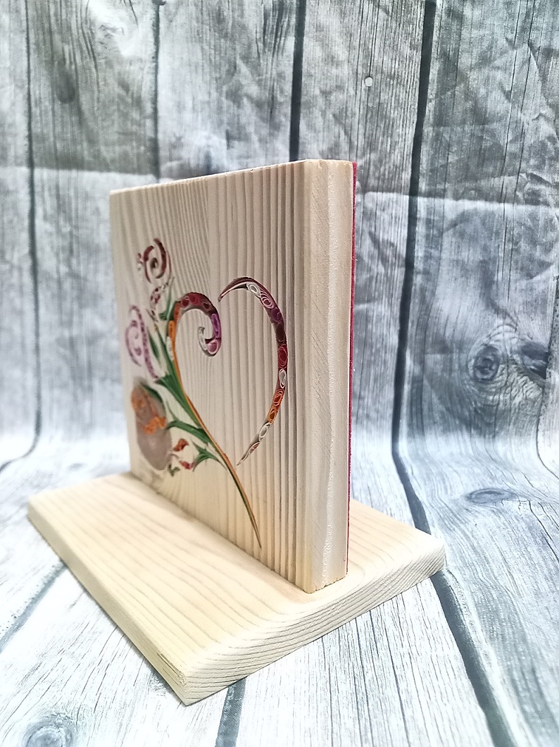 Cadre carré cœur fleur et paperolles : Petit cadre en forme de cœur et son socle tout en bois massif.